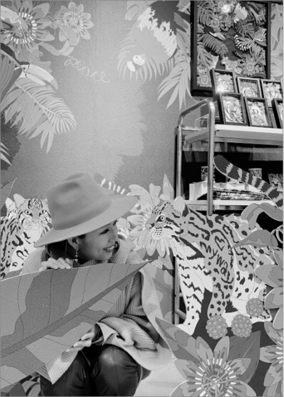 国内では商業アーティストとしてパッケージ、テキスタイル、挿絵、店舗ビジュアルなどへイラストを提供。アパレルメーカーとのコラボ商品開発など幅広い分野で活動。